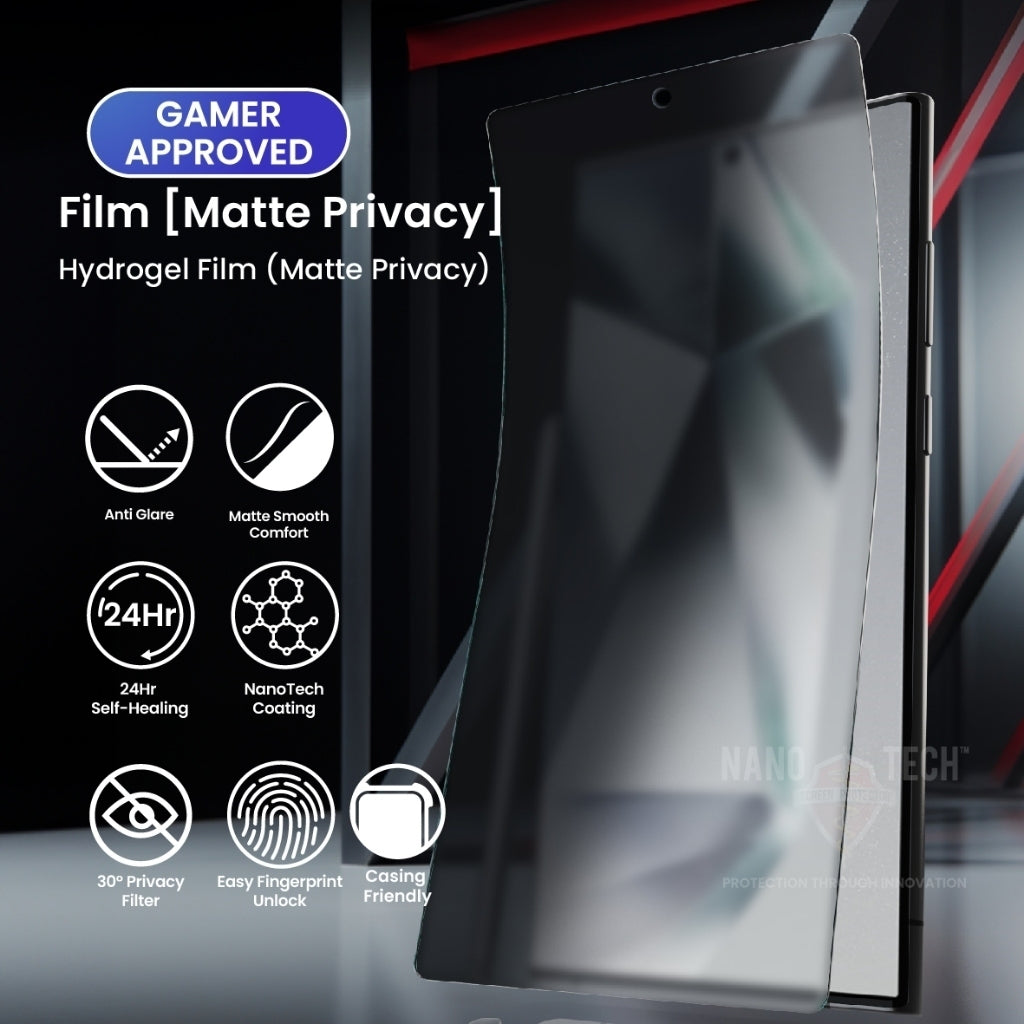 -Film [Matte Privacy] = Hydrogel Film (EPU) Matte + Privacy Soft Front Protector [Non-Glass Material]